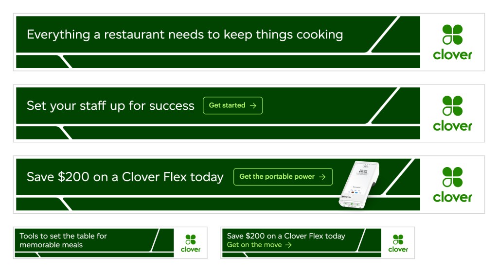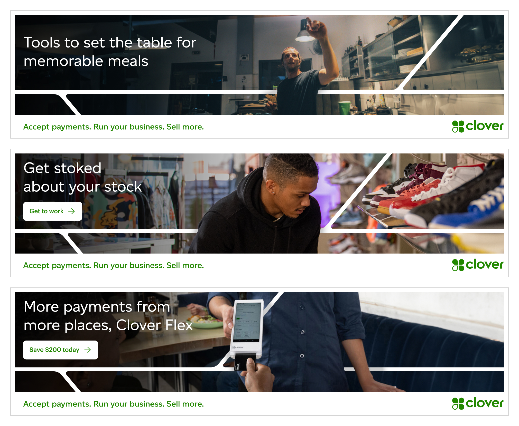 I lead the creative direction for Clover’s brand identity system. My team is charged with bringing Clover’s new visual identity to life across a wide range of touchpoints and experiences. Our work focuses on communicating the value of Clover to prospective merchants (business owners, contractors, freelancers, artisans, etc).